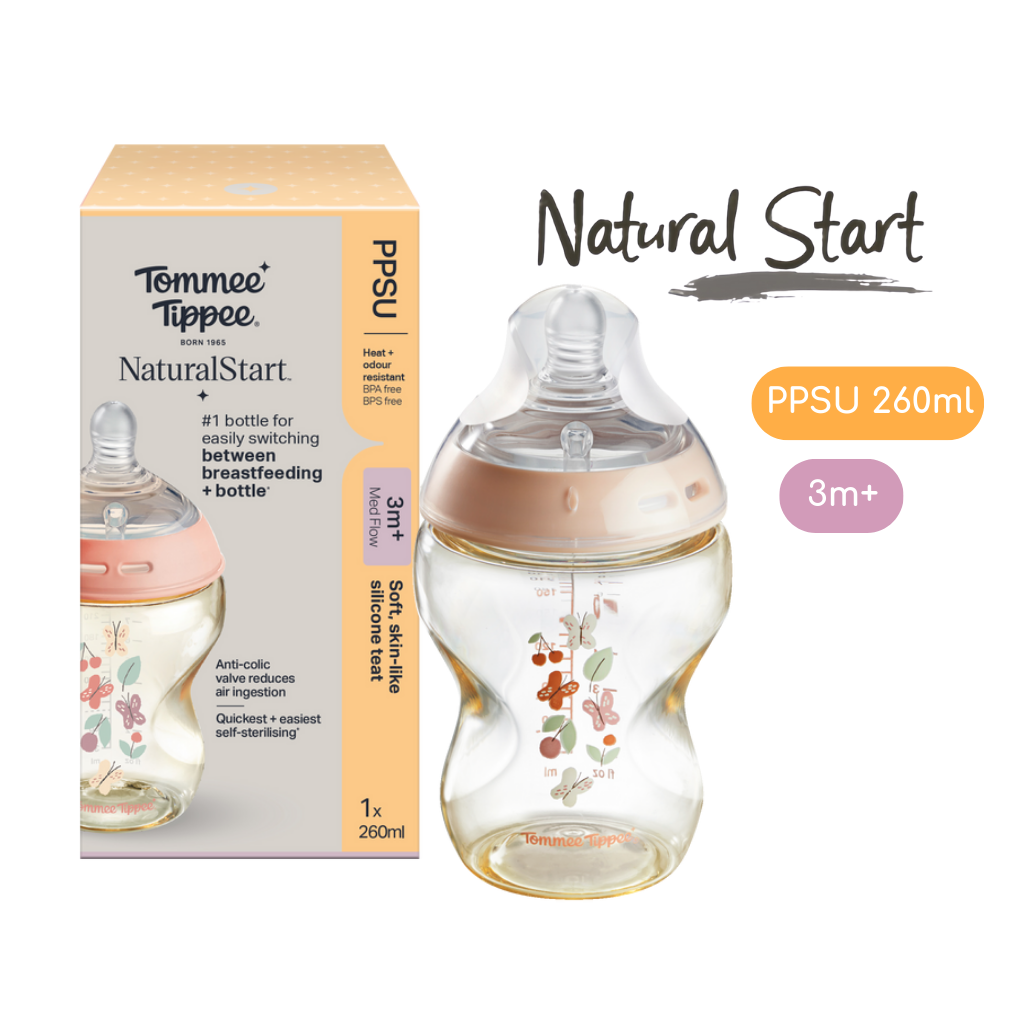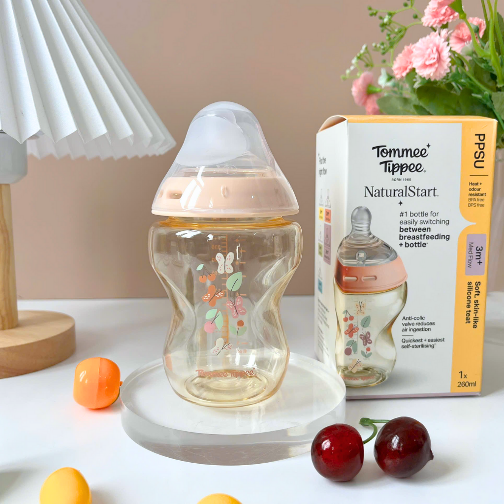 Bình Sữa PPSU Ty Siêu Mềm Tự Nhiên Tommee Tippee Natural Start 260ml, Núm Ty Của Bình 3-6 Tháng,