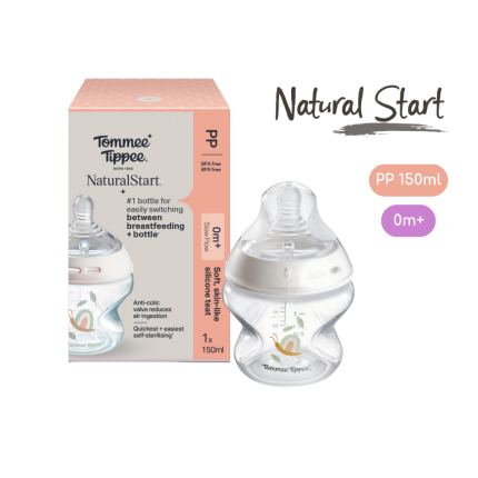 Bình Sữa PP Ty Siêu Mềm Tự Nhiên Tommee Tippee Natural Start 150ml, Núm Ty Của Bình 0-3 Tháng – Hoạ Tiết