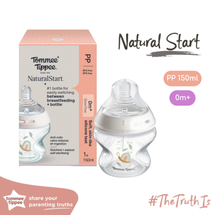 Tên sản phẩm: Bình sữa ty siêu mềm tự nhiên Tommee Tippee Natural Start 150ml (bình đôi), núm ty đi kèm 0-3 tháng