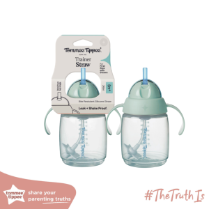 Bình tập uống nước có ống hút đáy nặng chống tràn, chống sặc Tommee Tippee Trainer Straw, 240ml, cho bé từ 6 tháng – Xanh