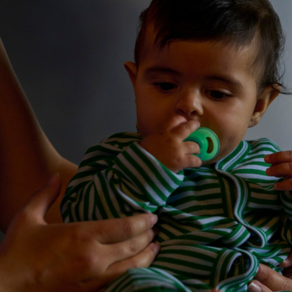 Ty ngậm được tích hợp viền dạ quang, khi trời tối sẽ phát sáng dịu nhẹ, đủ để mẹ dễ dàng nhận ra mà không cần bật đèn làm bé giật mình. Nhờ đó, mỗi khi bé vô tình làm rơi ty trong lúc ngủ, mẹ chỉ cần đưa tay là tìm thấy ngay, giúp bé nhanh chóng được xoa dịu và cả nhà giữ được giấc ngủ êm đềm trọn vẹn.